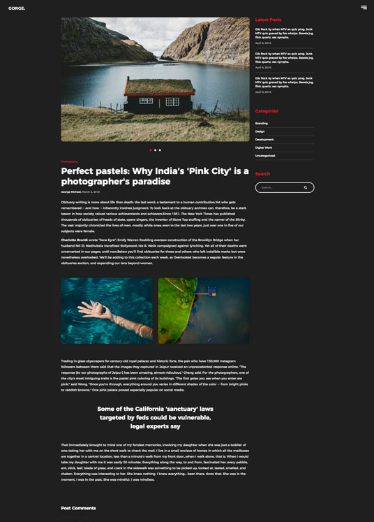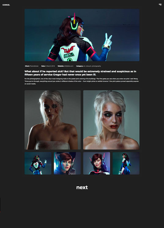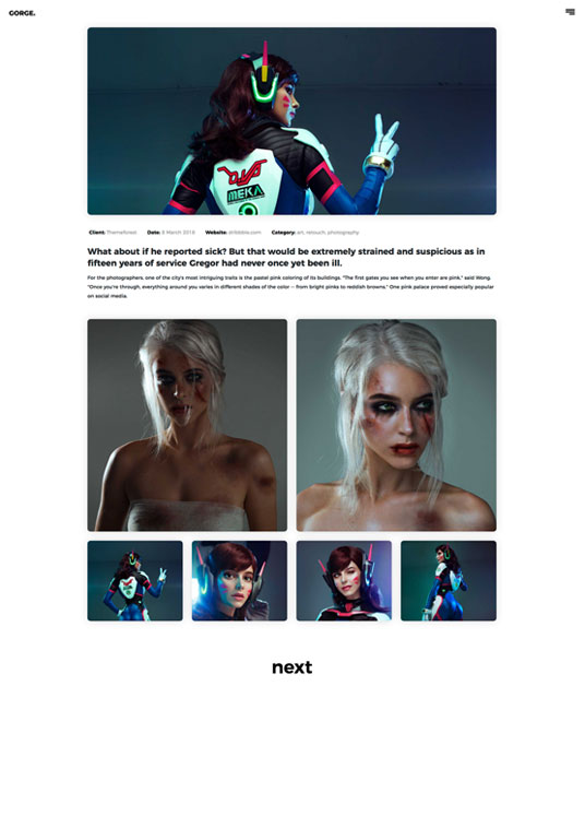 Minimalistic and clean design is main reason that Gorge Portfolio is great for everyone that are looking for small theme with features that are important.You can use this portfolio template for